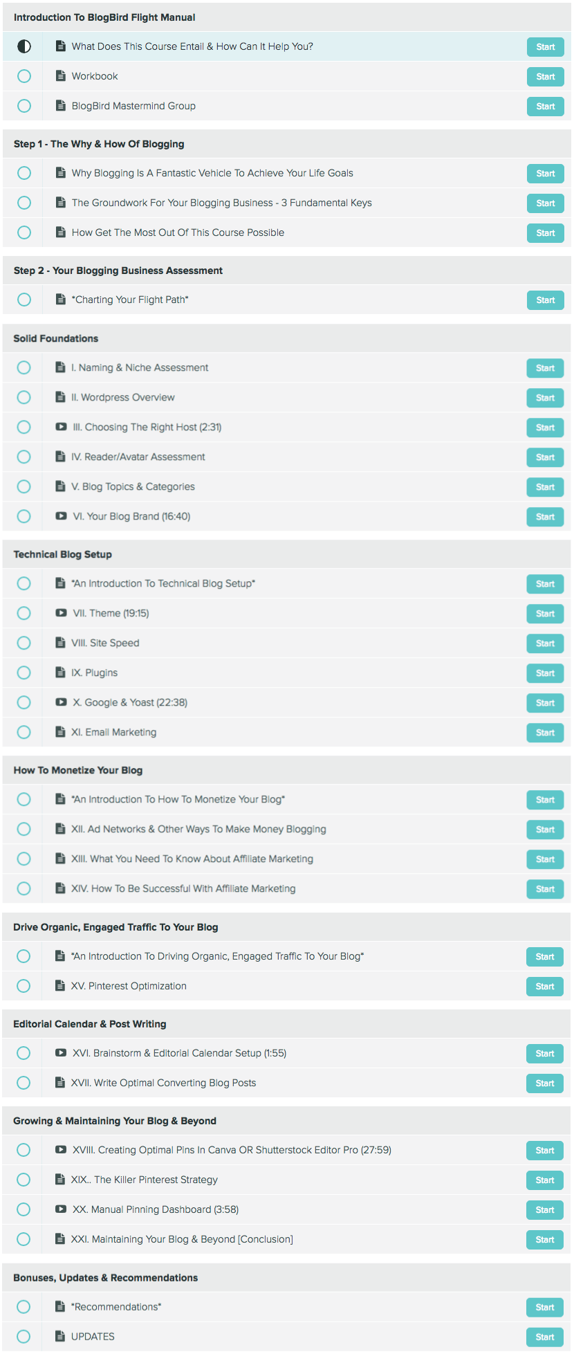 You are at a different place than others who blog or want to start a blog. You have different obstacles and questions and don’t need another cookie-cutter course. In BlogBird Flight Path, we’ll guide you through a customized plan, where you will answer yes or no questions to “Chart Your Flight Path”. This will tailor the course and create a clear-cut path towards your BIG blogging goals. Included is a workbook of over 25 pages, how-to videos (that don’t take forever to watch) and in no time, you will have a growing and monetized SOLID blog.